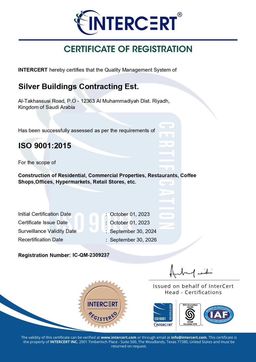 As part of our commitment to quality and safety in all our endeavors we have registered ourselves as an ISO 9001:2015 company. We have equipped and trained our teams with all the training and requirements of ISO certification thereby enabling us to deliver our projects on time with dedication to quality and safety